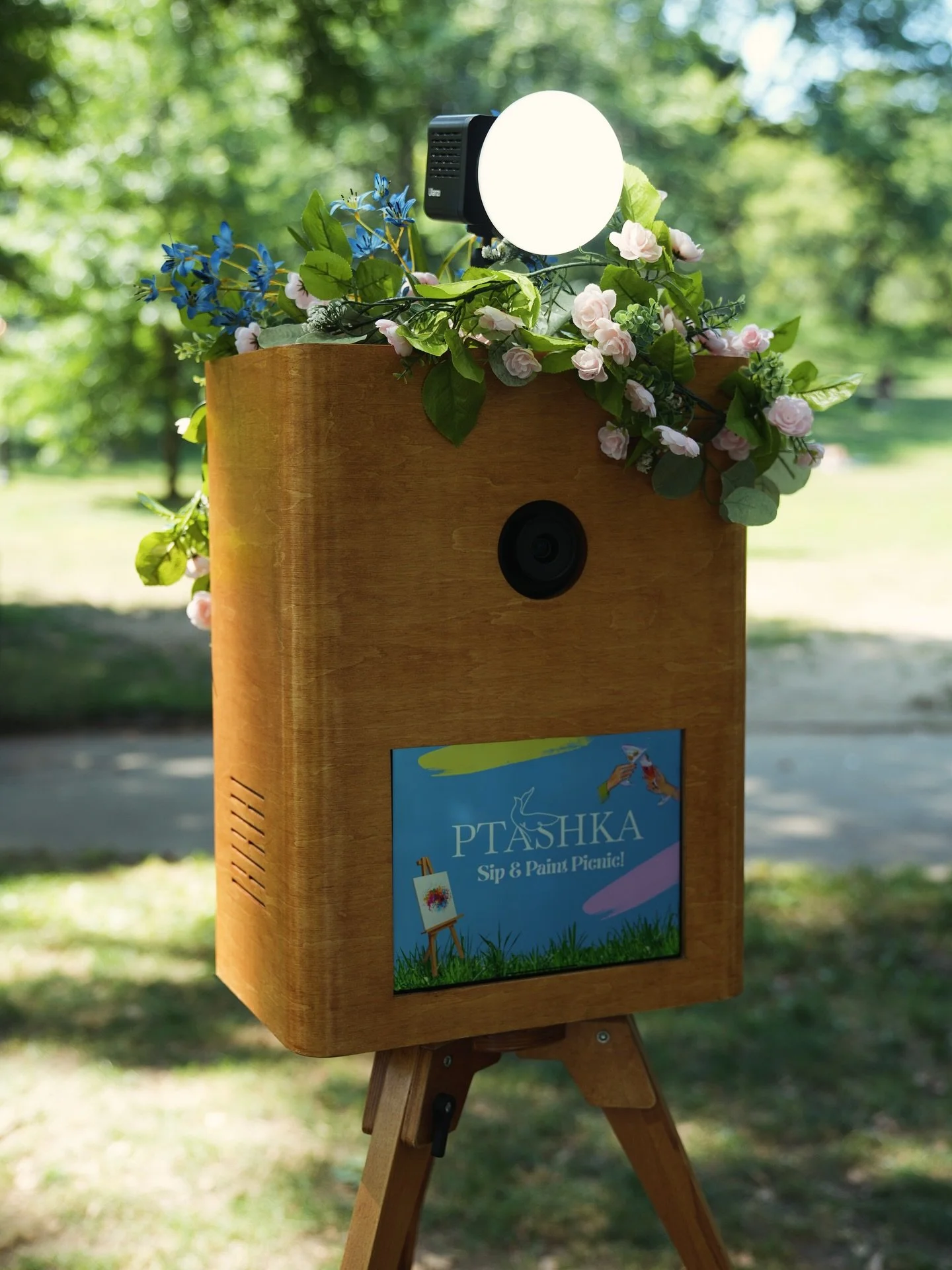 Step into our completely wireless photo booth, a sleek handcrafted wooden booth from Romania, designed to bring elegance and vibrant energy to any event. Our Studio-Professional Lighting provides the perfect glow for every shot. You can personalize your experience with a custom welcome message on our 13-inch Attraction Screen, making each guest feel truly welcomed. Plus, our Canon R100 Mirrorless Camera with a 50 mm zoom delivers stunning, High-Quality Digital Photos And Prints that highlight your best features.